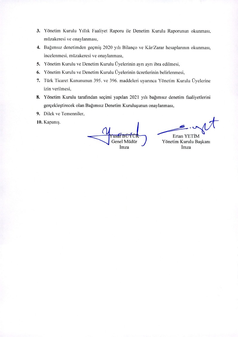 2020 Yılı Olağan Genel Kurul Toplantısına Davet Metni