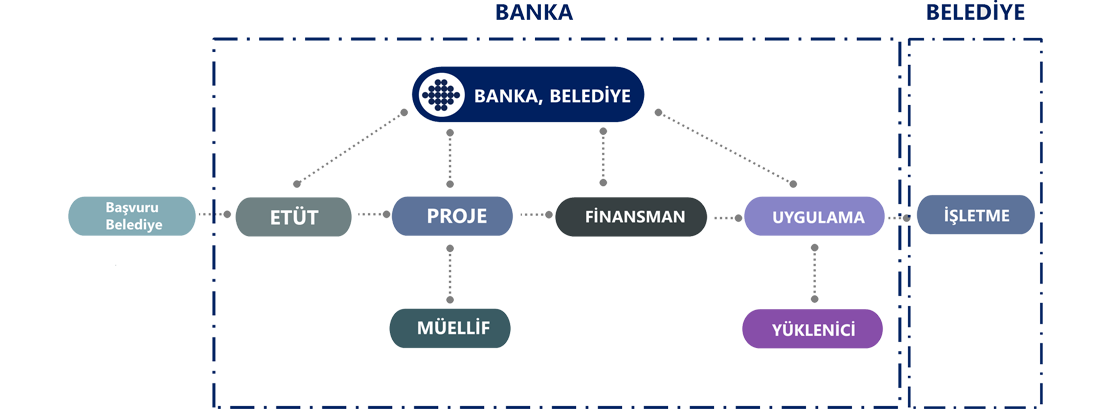 Banka, diğer bir temel fonksiyonu olan yatırım faaliyetleri açısından ise; içmesuyu, kanalizasyon, her türlü arıtma, katı atık, deniz deşarjı, jeotermal enerji uygulamaları, belediye hizmet binaları, soğuk hava deposu, terminal projelerini belediyeler ile işbirliği içinde yürütmektedir.
